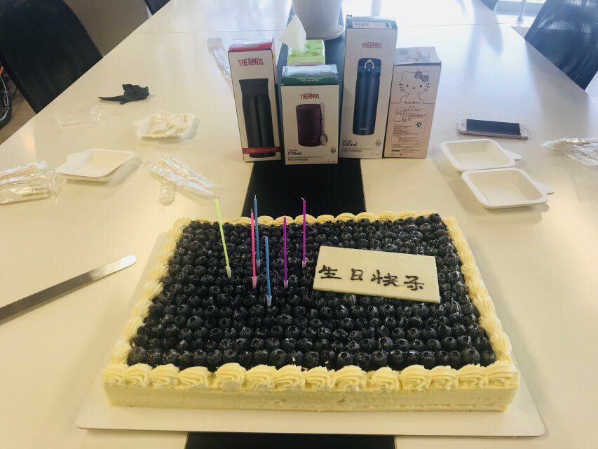 公司每個人手捧一塊生日蛋糕,一起分享美食,