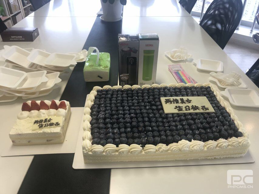 生日會首先由行政小姐姐宣布正式開始,在擺放著大份的生日蛋糕的餐桌前,介紹了兩位壽星。然后先送上公司給她們準備的生日禮物——膳魔師保溫杯。接著工作人員點燃了生日蠟燭,蛋糕上面寫著“兩位美女生日快樂”,其他員工也紛紛熱烈鼓掌,齊唱生日快樂歌,真誠地表達對兩位壽星的祝福。壽星們深受感動,在一片歡快的生日祝歌中,在燭火搖曳的蛋糕前,許下生日愿望。
