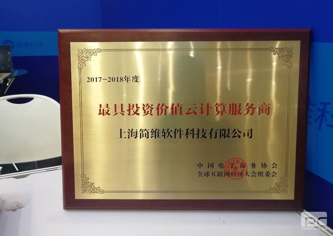 (上海簡維——“年度具有投資價值云計算服務商”獎)